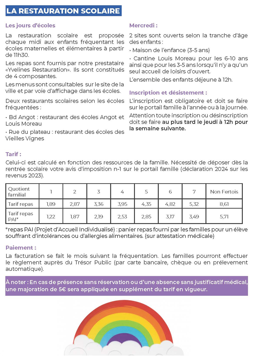 Des menus 4 composantes sont proposés aux enfants à partir de la rentrée de septembre 2023. Ils sont composés d'une entrée et/ou d'un dessert et/ou d'un produit laitiers et d'un plat protidique avec un accompagnement. Les menus visent à couvrir les besoins nutritionnels des enfants. Ils ont été proposés par notre prestataire "Yvelines Restauration" qui nous a annoncé une 2nde augmentation des tarifs dans l'année. Afin de ne pas répercuter cette 2nde hausse, la commune a retenue cette proposition. Lors de la commission des menus organisée chaque trimestre, les membres auront la possibilité d'opter pour un autre produit si un des 4 déplait.